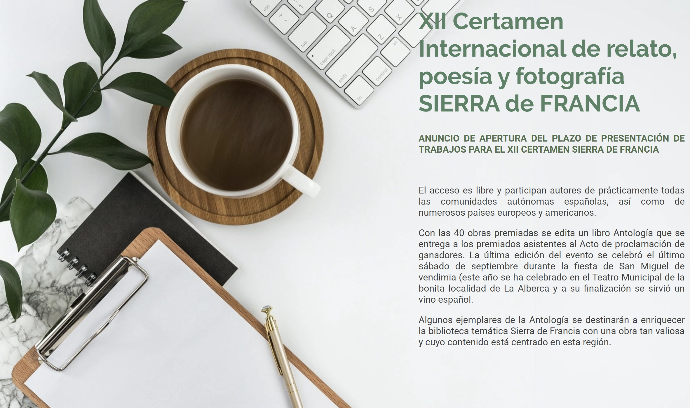 Obras: Dado que tanto la fotografía ganadora como la segunda, se incorporarán para formar la cubierta y contracubierta del libro Antología del XII Certamen literario Sierra de Francia, se recomienda una orientación vertical de la fotografía.
